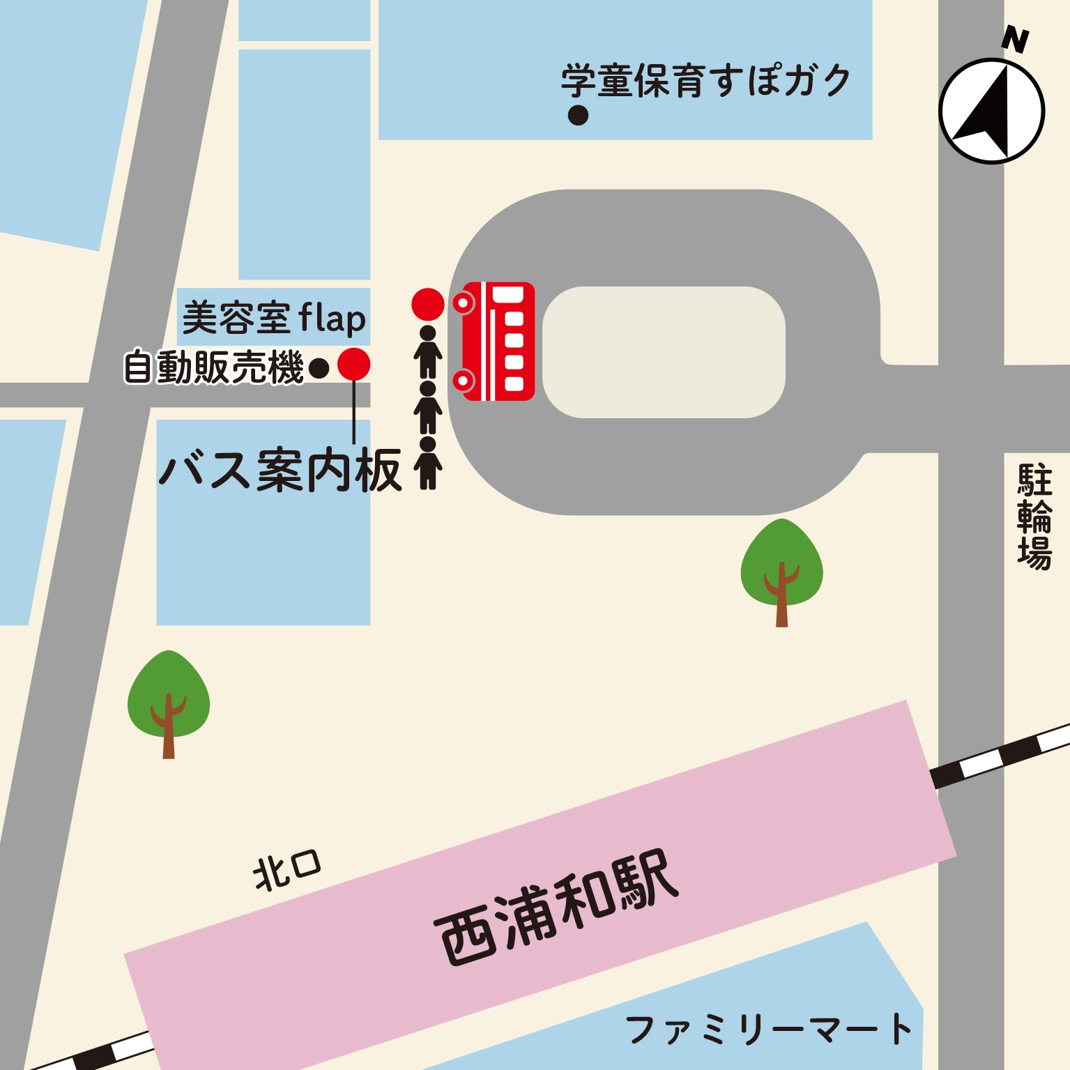 ■武蔵浦和駅 図のようにポストを先頭にしてロータリーに沿って並んでください。 ※歩行者やサウスピアご利用者の通行の妨げにならないようご配慮ください。