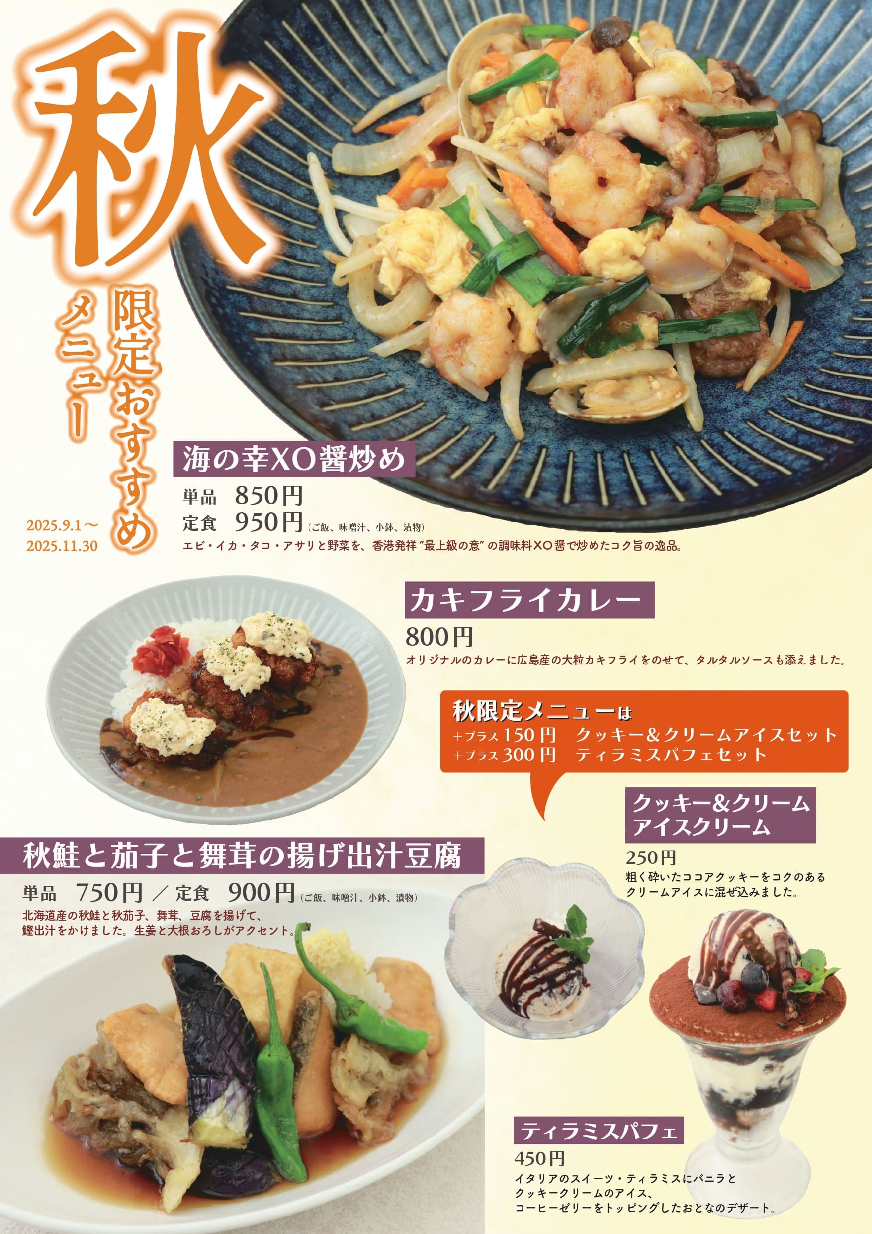 レストラン菜土では9月1日より秋限定メニューの販売を開始いたします。
